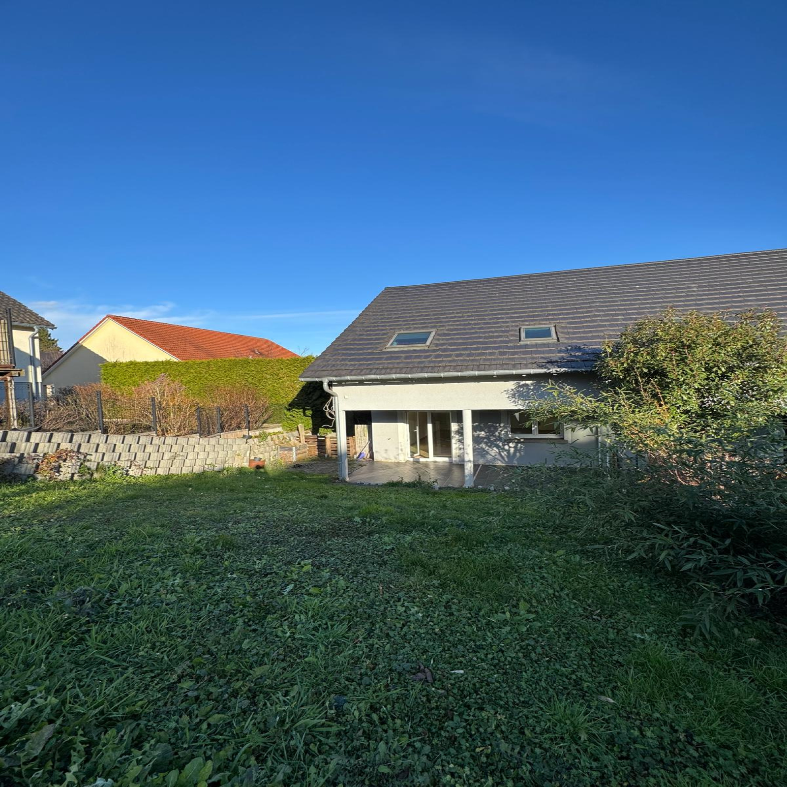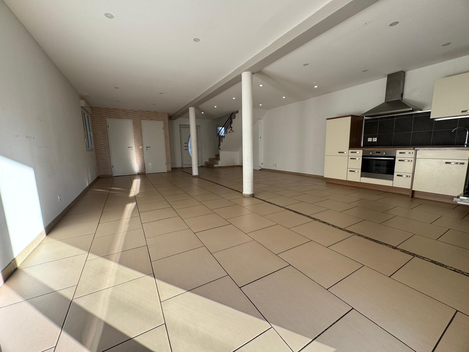 Maison contemporaine mitoyenne d’un côté, construite en 2006, située dans le quartier calme et recherché de Welferding. Surface habitable : 106 m² sur deux niveaux – Terrain : 414 m². Rez-de-chaussée : Entrée, Séjour lumineux ouvert sur la cuisine, WC indépendant, Buanderie / chaufferie. Accès direct à la terrasse et au jardin. Étage : Dégagement, 3 chambres, Salle de bain + salle d’eau + WC. Maison fonctionnelle, agréable et au calme, idéale pour une famille. Proche des commodités, écoles et axes principaux.