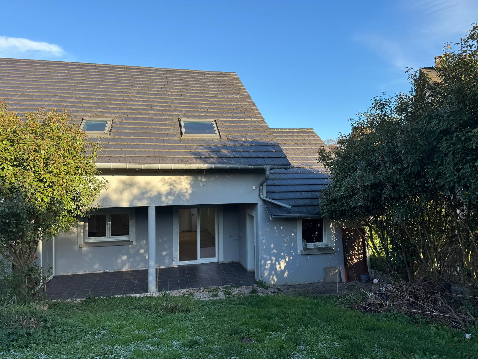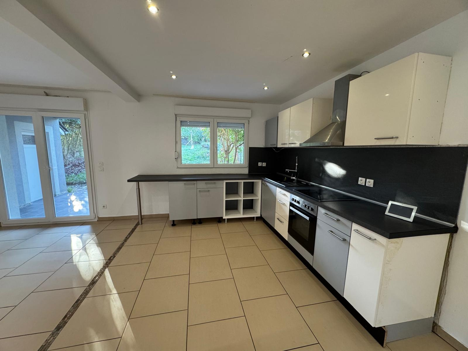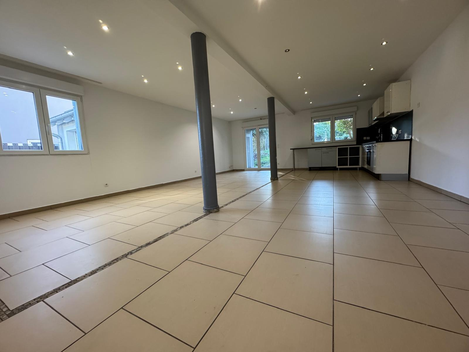 Maison contemporaine mitoyenne d’un côté, construite en 2006, située dans le quartier calme et recherché de Welferding. Surface habitable : 106 m² sur deux niveaux – Terrain : 400 m². Rez-de-chaussée : Entrée, Séjour lumineux ouvert sur la cuisine, WC indépendant, Buanderie / chaufferie. Accès direct à la terrasse et au jardin. Étage : Dégagement, 3 chambres, Salle de bain + salle d’eau + WC. Garage en annexe. Maison fonctionnelle, agréable et au calme, idéale pour une famille. Proche des commodités, écoles et axes principaux.