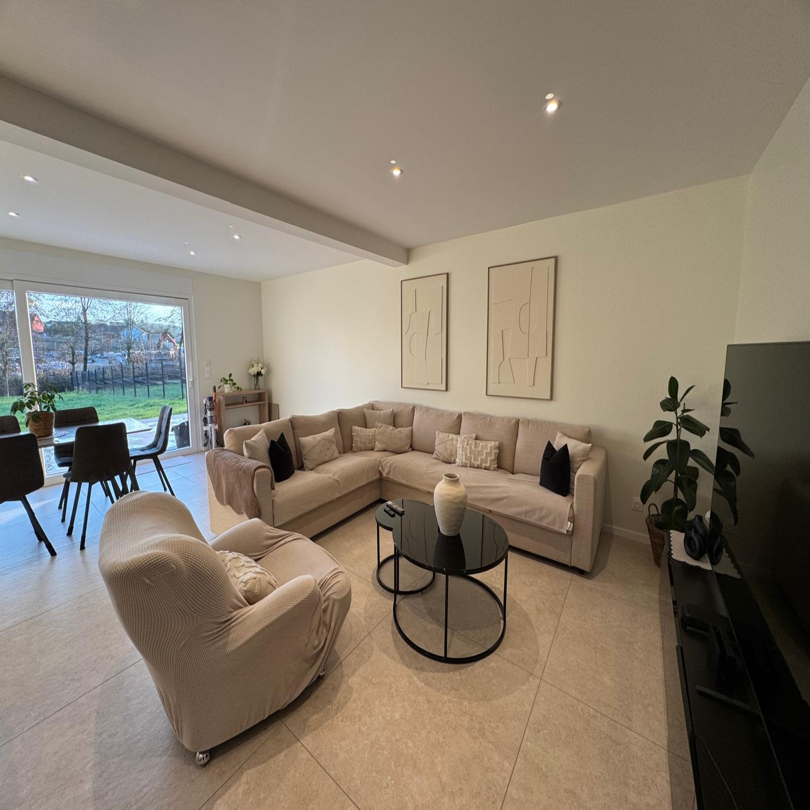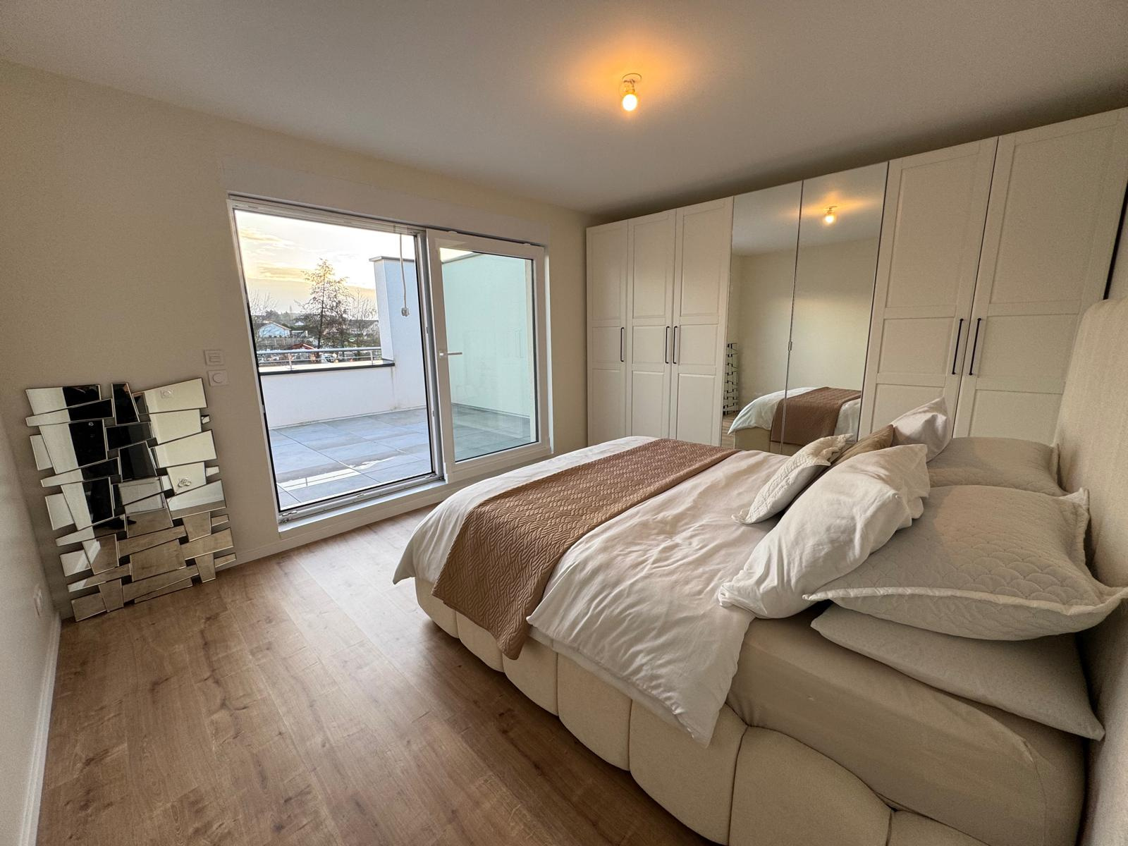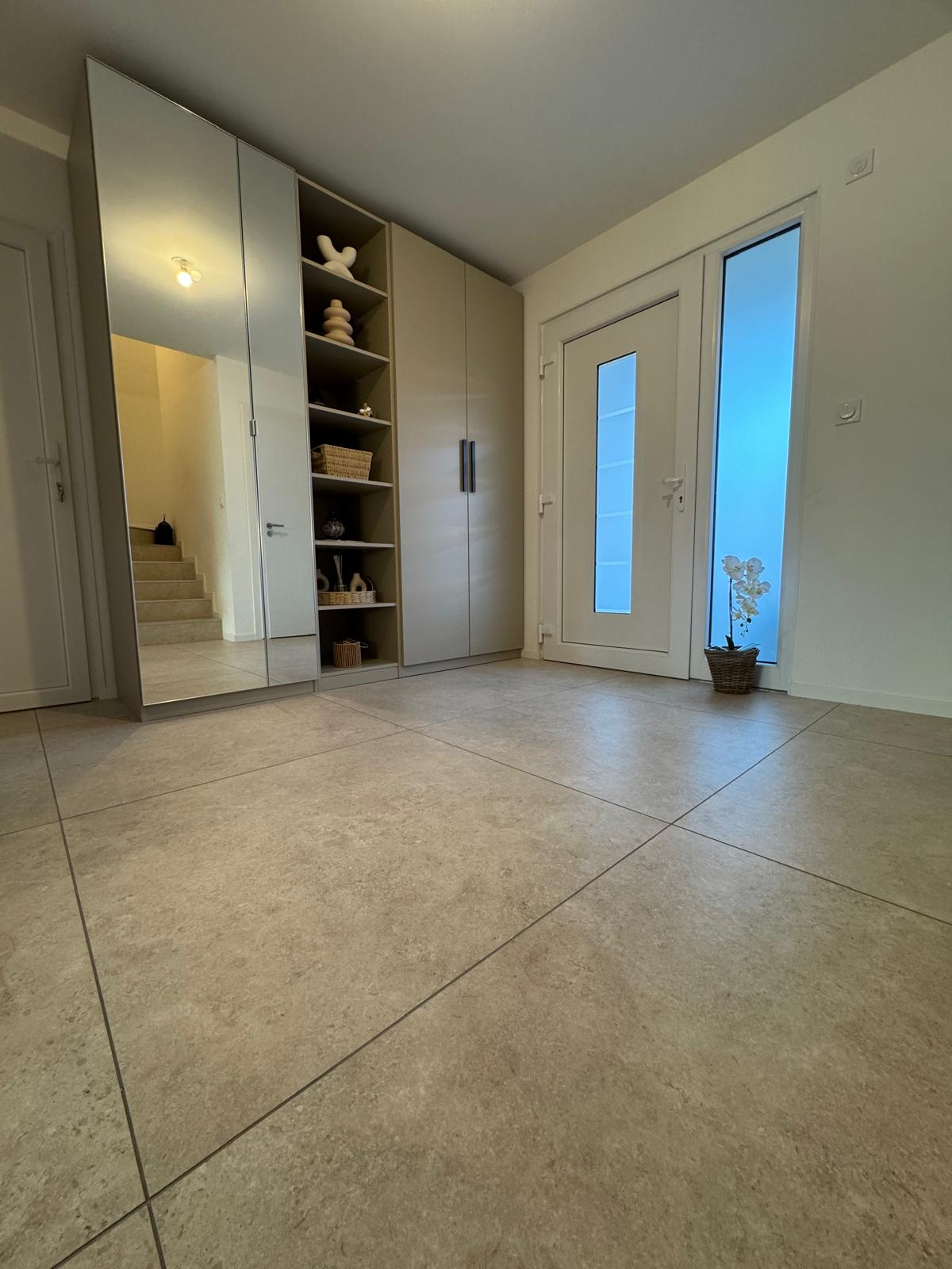 Découvrez cette superbe maison récente de 136 m², édifiée sur deux niveaux et mitoyenne d’un côté, offrant des prestations haut de gamme et un excellent classement énergétique, gage de confort et d’économies au quotidien. Dès l’entrée, un hall accueillant avec dressing et WC indépendant vous mène vers une magnifique pièce de vie de près de 50 m², baignée de lumière, comprenant un salon spacieux et une cuisine moderne entièrement équipée. Cet espace s’ouvre directement sur une agréable terrasse et un jardin. Le rez-de-chaussée dispose également d’une cuisine d’été, avec un accès direct à la terrasse et au jardin, idéale pour recevoir en toute convivialité. Un garage avec accès direct à la maison complète ce niveau. À l’étage, l’espace nuit se compose de trois chambres, dont deux avec accès à une grande terrasse, offrant une belle luminosité et une vue dégagée. Une salle d’eau moderne ainsi qu’un WC viennent parfaire cet étage. Maison très récente, Matériaux et finitions de grande qualité, Volumes généreux et excellente luminosité, Excellent classement énergétique. Un bien rare, alliant modernité, confort et élégance, idéal pour une famille à la recherche d’une maison clé en main.
