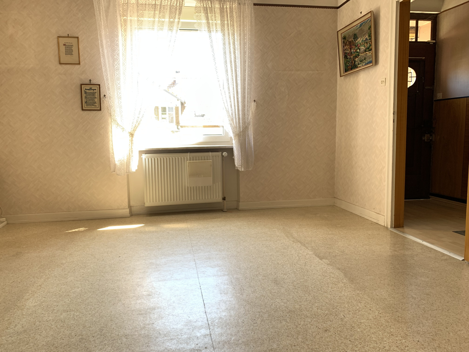 En exclusivité, dans le charmandt village de WIESVILLER à proximité de SARREGUEMINES, nous vous proposons cette maison qui offre au rez-de-chaussée : entrée-couloir, cuisine équipée, salon séjour, véranda, WC, garage ; à l'étage : 3 chambres, 1 salle de bains-WC, 2 débarras. Sous-sol caves. Petit prix à saisir ! Environnement calme et agréable.